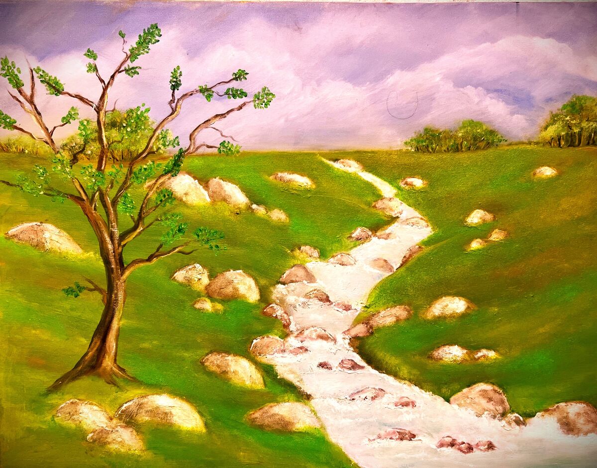 This painting, “Le Ruisseau,” or “The Stream,” serves as a metaphor for life itself. Just as a river navigates through rocky terrains, life too is filled with stress and challenges. It can flow smoothly at times, or it may wrestle with the obstacles in its path. Yet, amidst all this, it can also embody tranquility and beauty, much like the serene greenery that represents the nurturing embrace of nature around us. Just as the stream persists, so do we, in our journey through life.