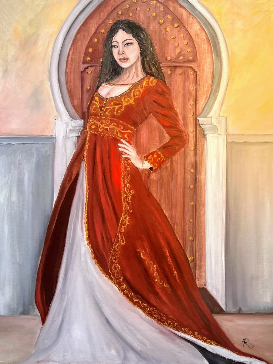 Algerian women have many rights and are better then their neighboring countries but they are still subject to the strict rule of a patriarchal society. L'algeroise is my view of an algerian woman wearing the traditional kaftan but still fighting to improve the lives of all her counterparts.