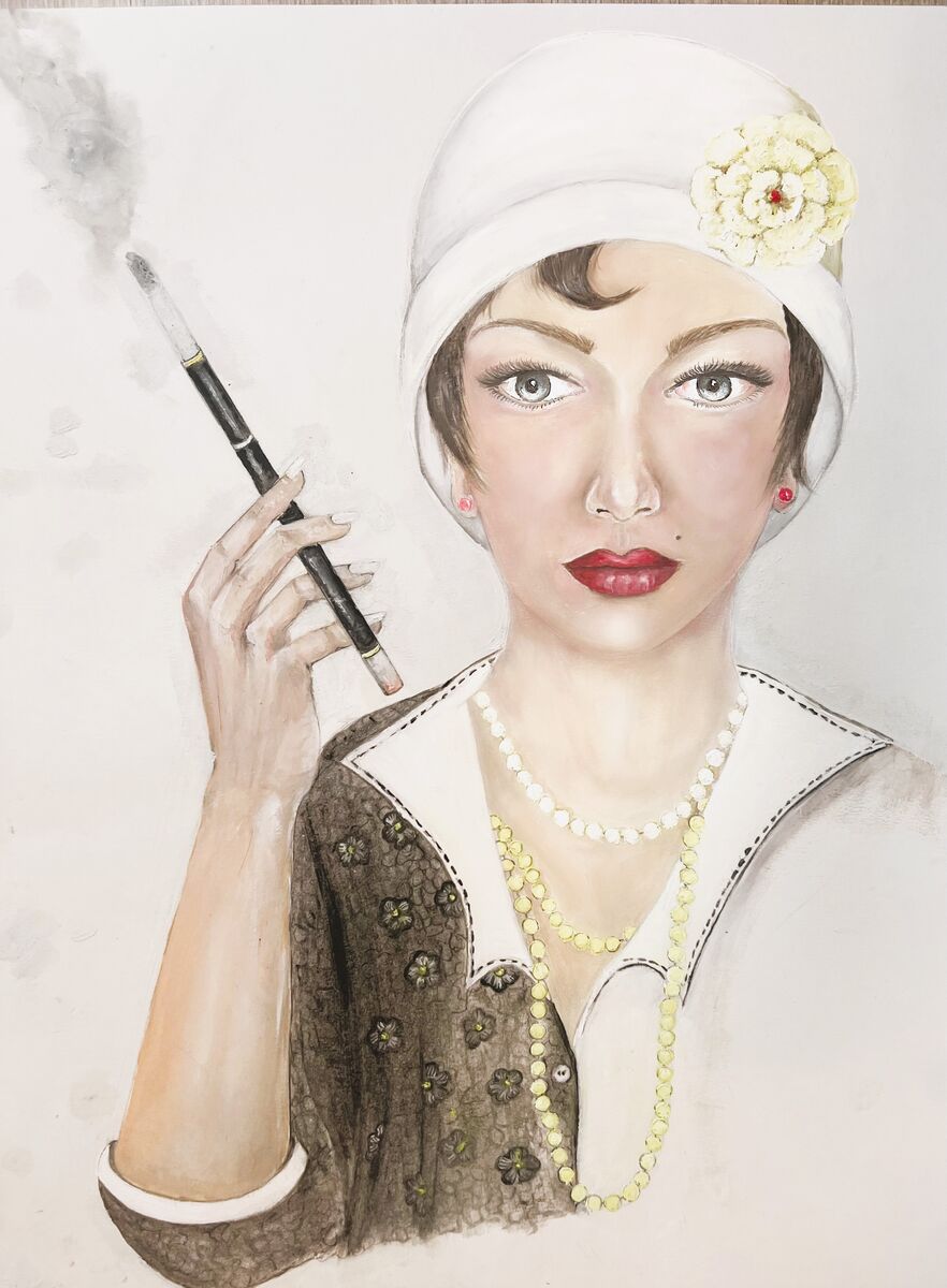 Titled “Mademoiselle”, this painting summarizes the transformative era of the 1920s in America, a time that ushered in unprecedented freedom and exploration for women. This period marked a significant shift as women began to assert themselves in politics and society, breaking away from traditional roles. The dawn of the 20th century signified a new age of sexual liberation and marked the initial strides towards achieving a semblance of gender equilibrium. It was a time of change, a time of growth, and a time of empowerment for women. This painting is a tribute to that remarkable era.