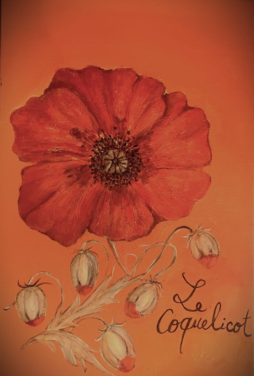Le coquelicot This artwork, featuring the delicate poppy, holds a dear place in my heart. Poppies are my cherished blossoms, evoking fond memories of my youth in the French countryside. Those idyllic summers were spent amidst nature’s splendor, where wildflowers weren’t just a sight to behold—they were a piece of my soul, a cherished fragment of my formative years To me, red poppies are more than just symbols; they are the essence of my childhood, the epitome of youthful abandon, and the very fragrance of summer’s embrace.